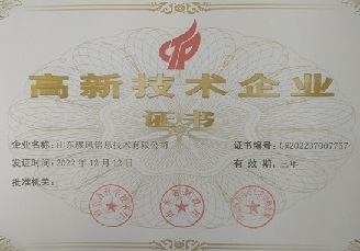 山東驟風信息技術(shù)有限公司,于2022年12月通過了高新技術(shù)企業(yè)認證!